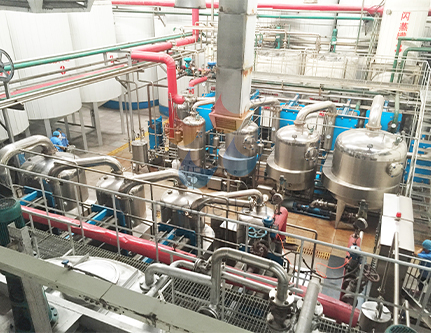 清糖液經(jīng)過多效蒸發(fā)冷凝系統(tǒng),濃縮糖業(yè)濃度