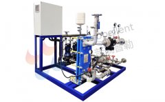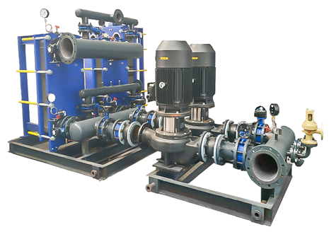 換熱機(jī)組是集板式換熱器、泵、管道、閥門、儀表及控制系統(tǒng)于一體的供暖設(shè)備。由兩個(gè)循環(huán)系統(tǒng)組成,即用戶側(cè)和熱源側(cè)循環(huán)系統(tǒng)。這兩個(gè)循環(huán)通過(guò)換熱器進(jìn)行熱交換,將熱量傳遞給用戶,可根據(jù)不同的換熱需求及維修管理方便采用雙泵、雙換熱器方案,滿足用熱單位的各種需求。